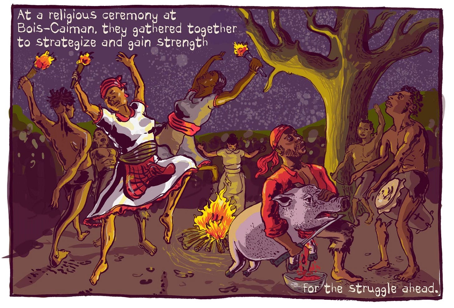 All the illustrations come from Rocky Cotard and Laurent Dubois’ “The Slave Revolution That Gave Birth to Haiti,” a graphic history of the Haitian Revolution.
